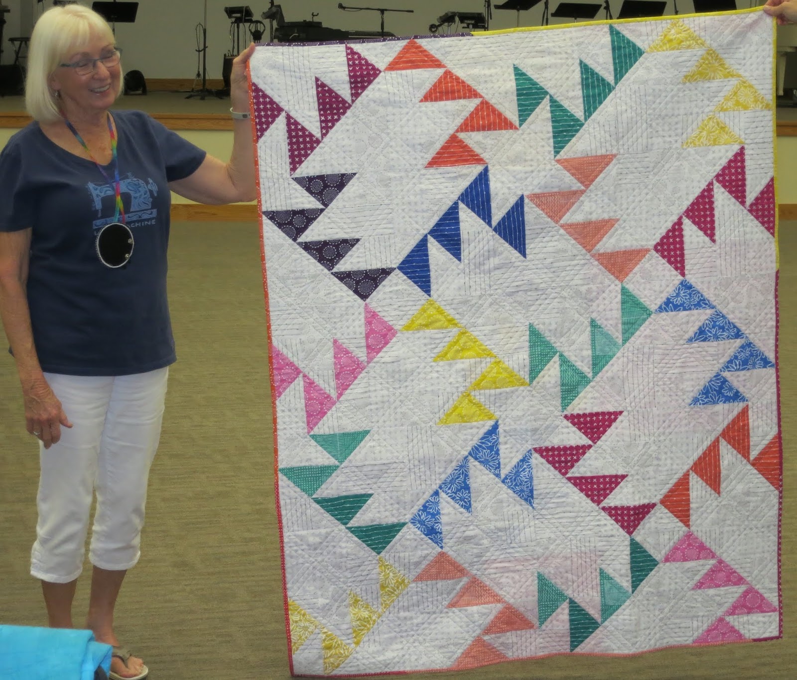 “Chuckles” is another Sew Sampler kit. Dee quilted all her quilts on her home sewing machine, a Bernina.