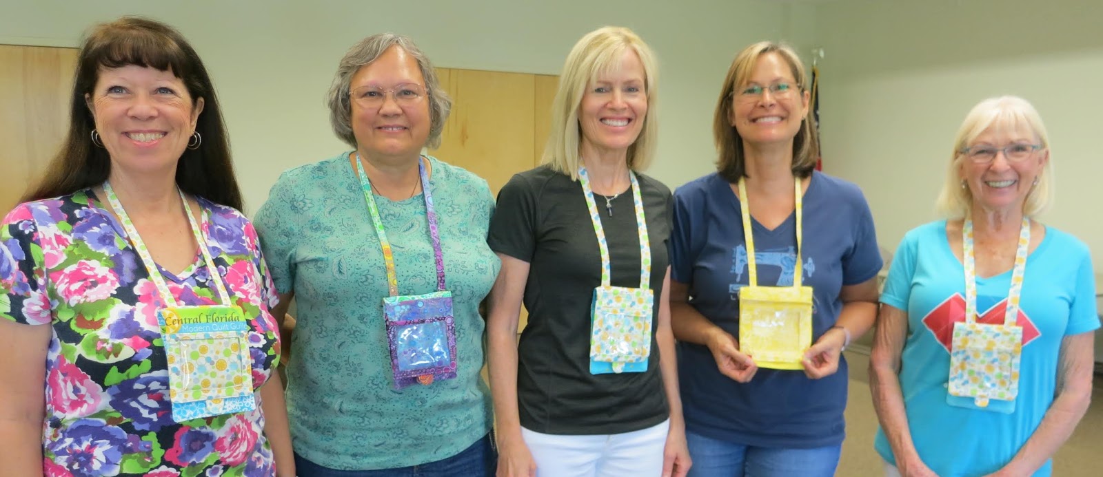 We were happy to see badges made in many bright colors, with several of them made from Central Florida MQG fabric. Thank you President Karen and Linda H. for leading this project.