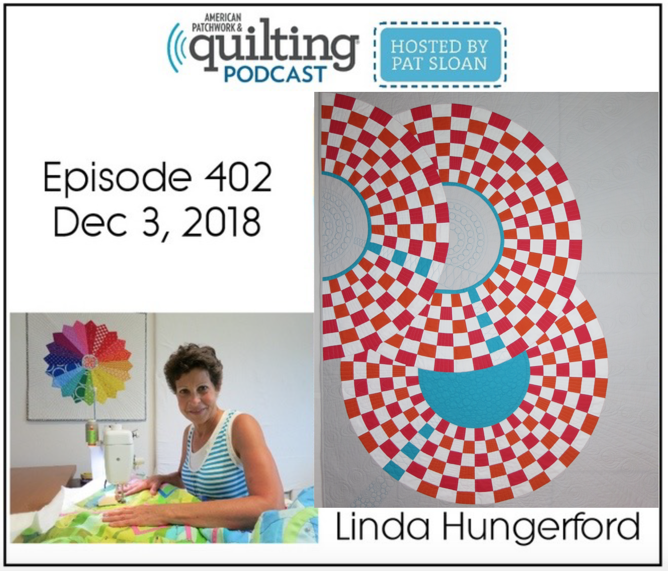 Or it can be heard later through iTunes (American Patchwork and Quilting Podcast via All People Quilt) or through the computer on Pat Sloan’s blog. Choose Episode 402.