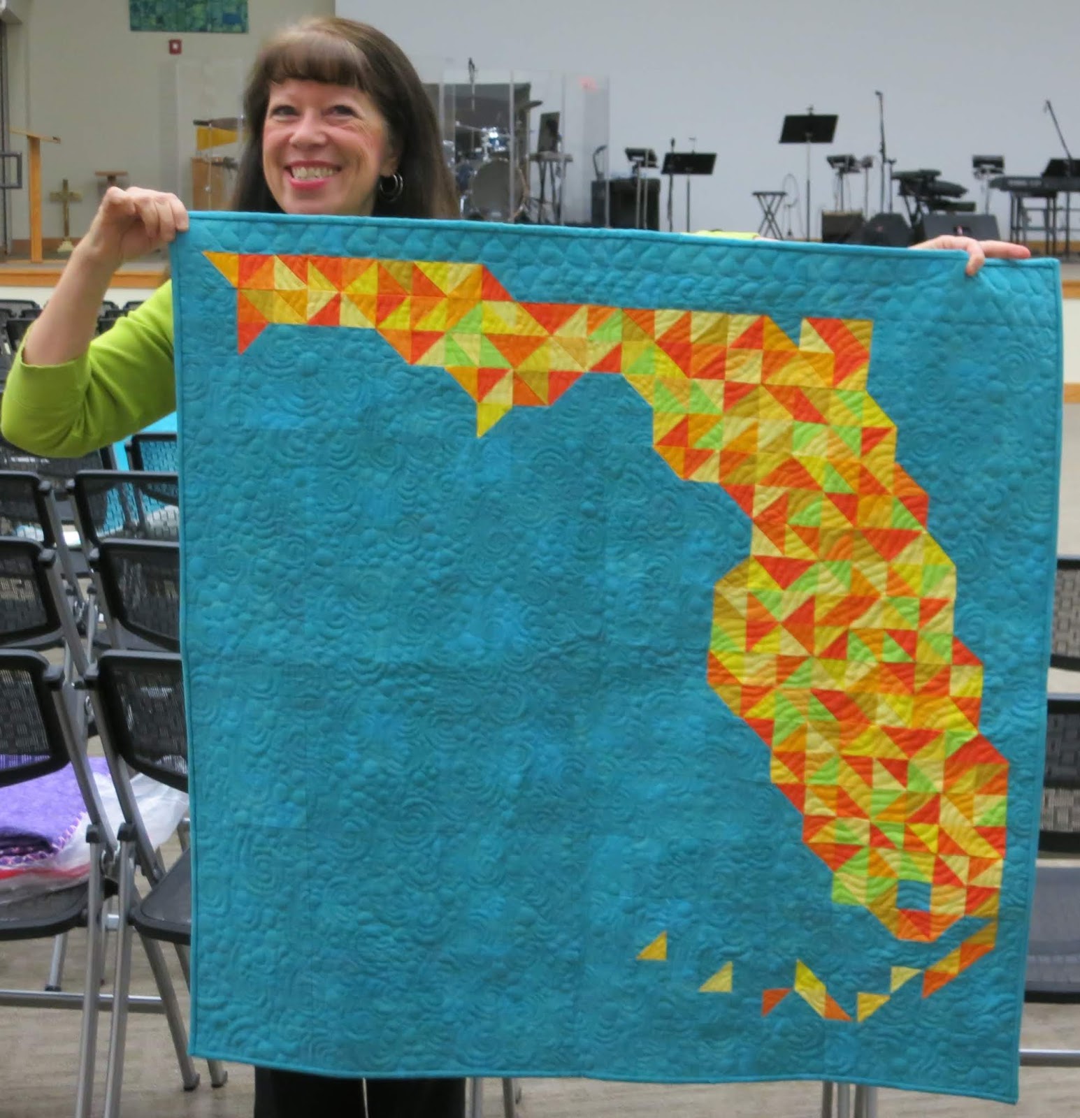 Karen (@sunrayatplay) showed her finished Florida quilt, a pattern by member Linda (@flourishingpalms). She quilted it on her Tiara.
