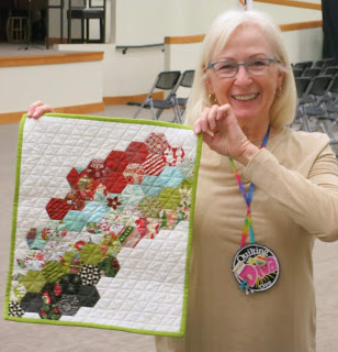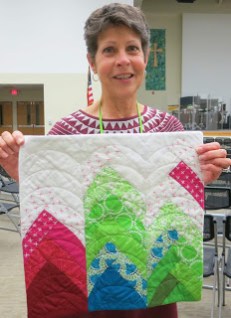 She also introduced a new addition to our lending library – rulers! Members may check out a variety of rotary cutting rulers from our chapter library. Click the tab above – Lending Library Rulers – to see what rulers are in our library. More rulers will be added!