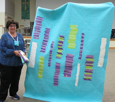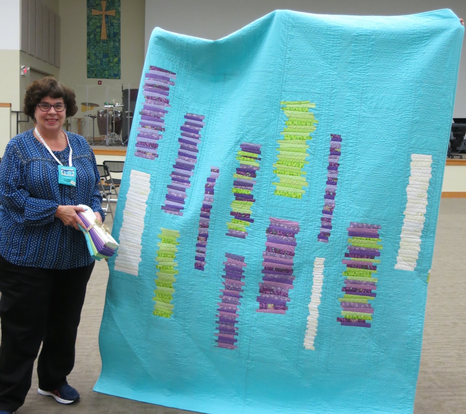 Missy made this “Freefall” bargello quilt following an Ann Lauer quilt-as-you-go pattern.