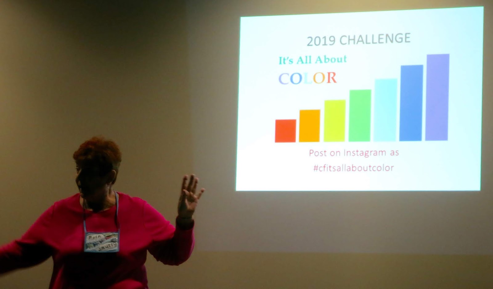 President Karen (@sunrayatplay) launched our meeting with information about upcoming activities – Sew-In Workshop, retreat, a guest presenter and workshop in April. Click this link for more information.
