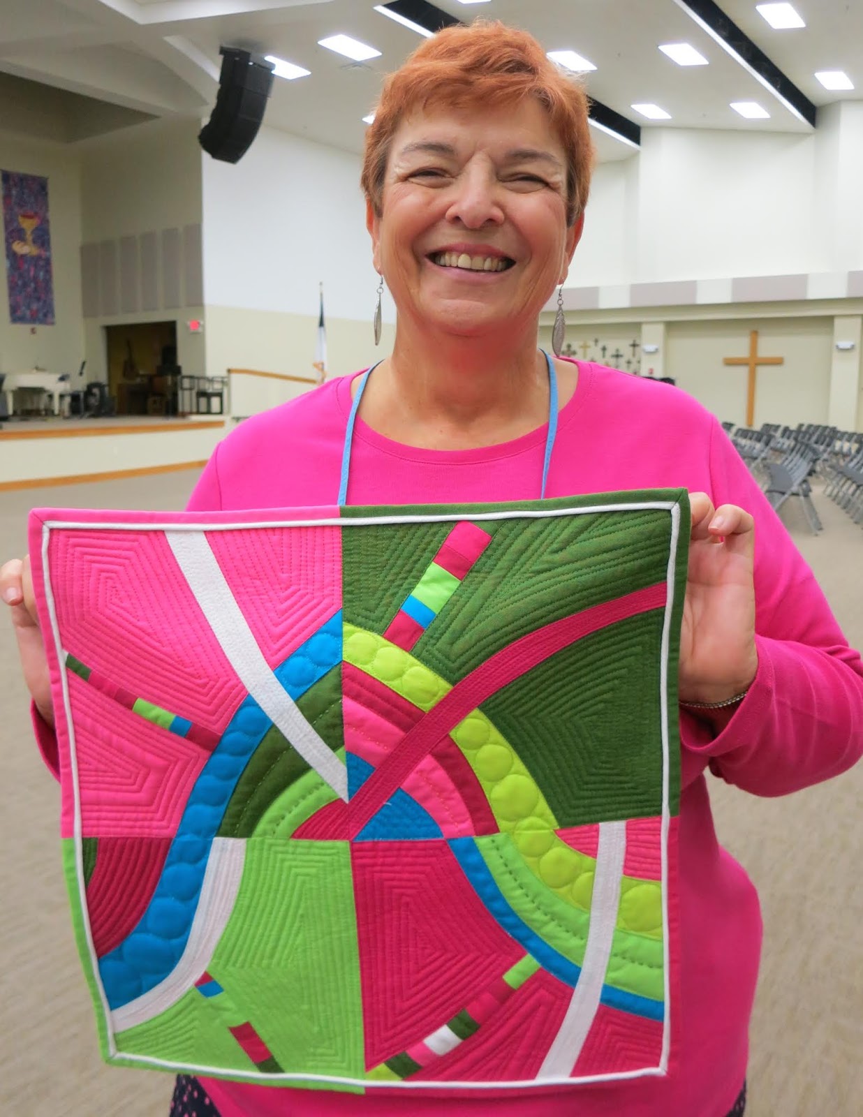 Linda (@flourishingpalms) shared her entry into the Curated Quilts curve challenge. She used Victoria Findley-Wolfe’s strip braid ruler, reduced to 60 percent, to cut and piece this mini, which wasn’t accepted for publication.