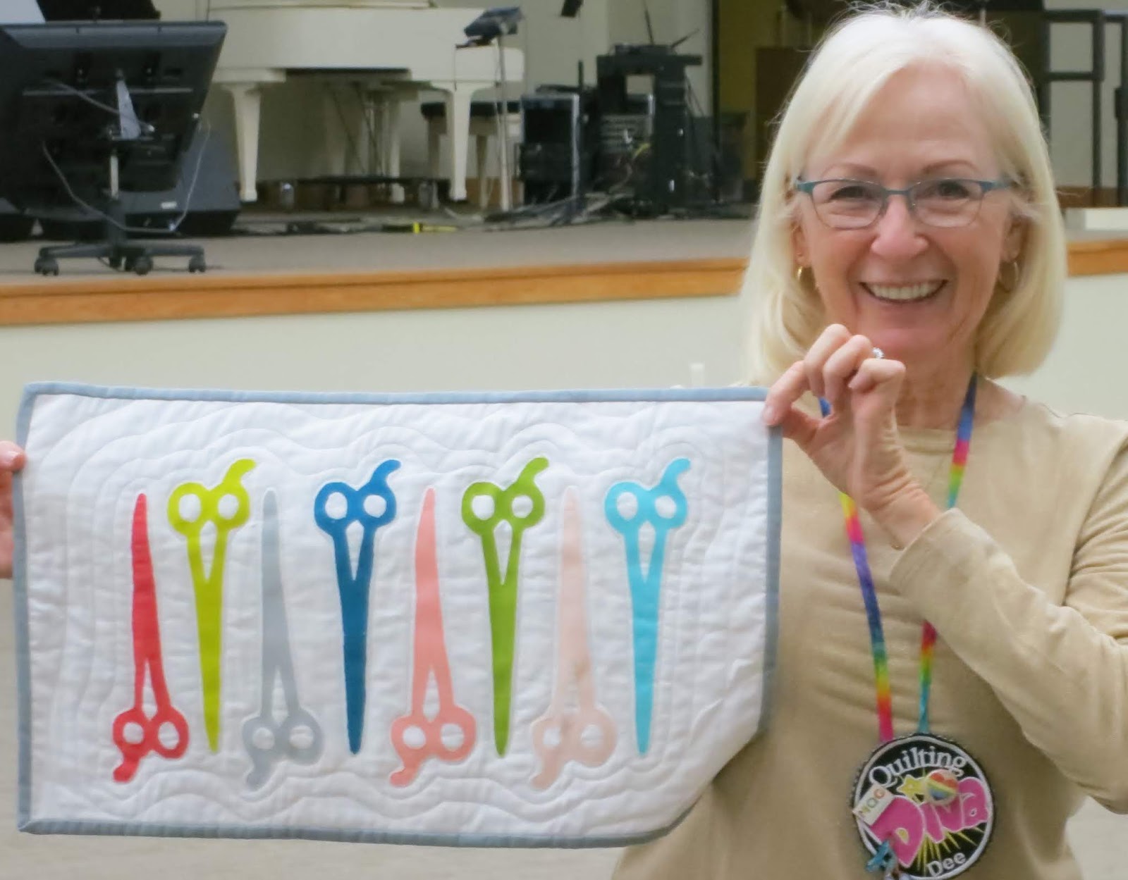 This is “Don’t Touch the Scissors,” an appliqué quilt.