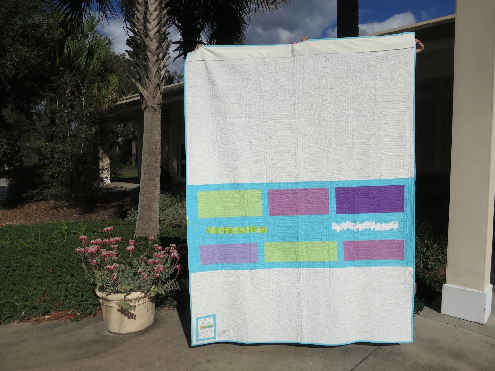 This year’s quilt dimensions: Twin size which is 65″ X 88″, and no larger than 72″ X 92″.