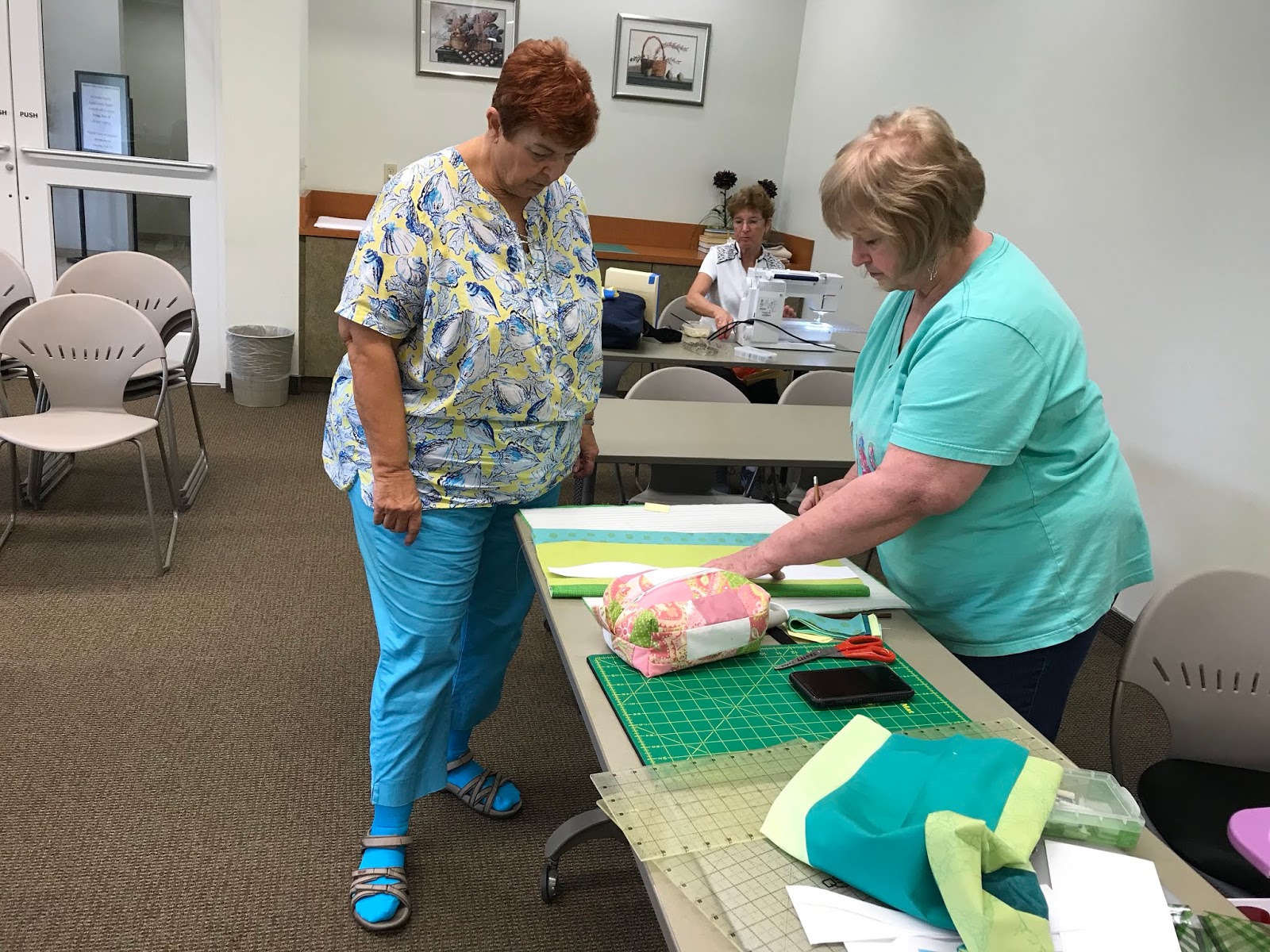 | Karen and Dee have begun cutting their strips… |