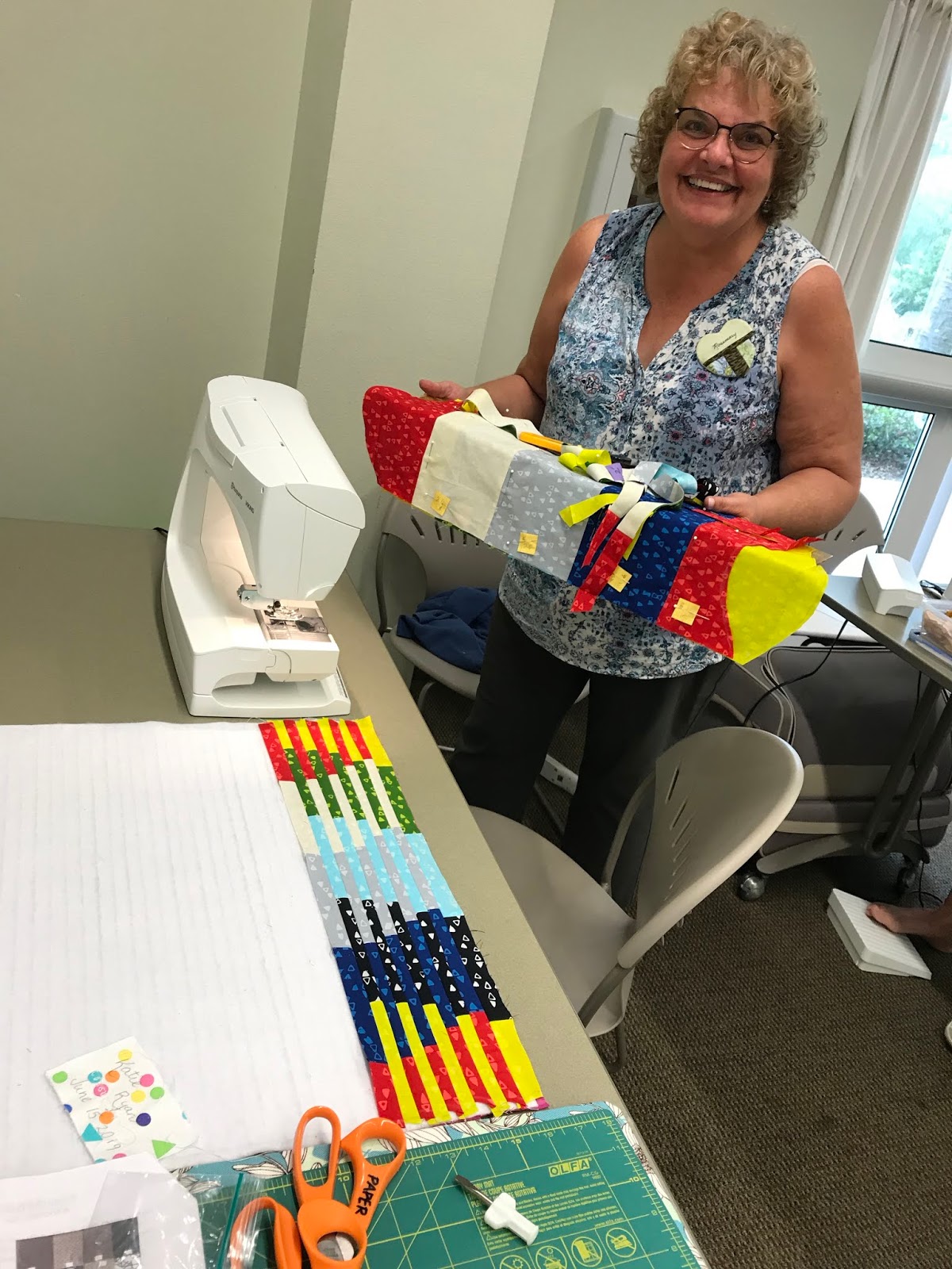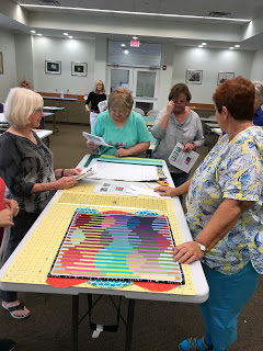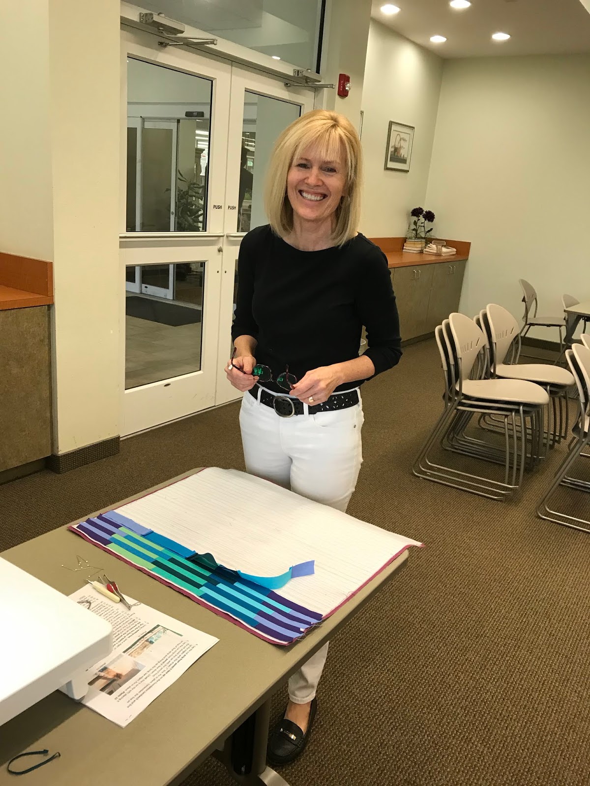 Our member-led workshop given by Beth (@blue_dragonfly5) was about learning a quilt-as-you-go technique called “Interleave” held at the Belleview Public Library for eleven of us in attendance.