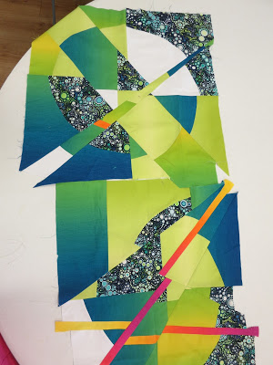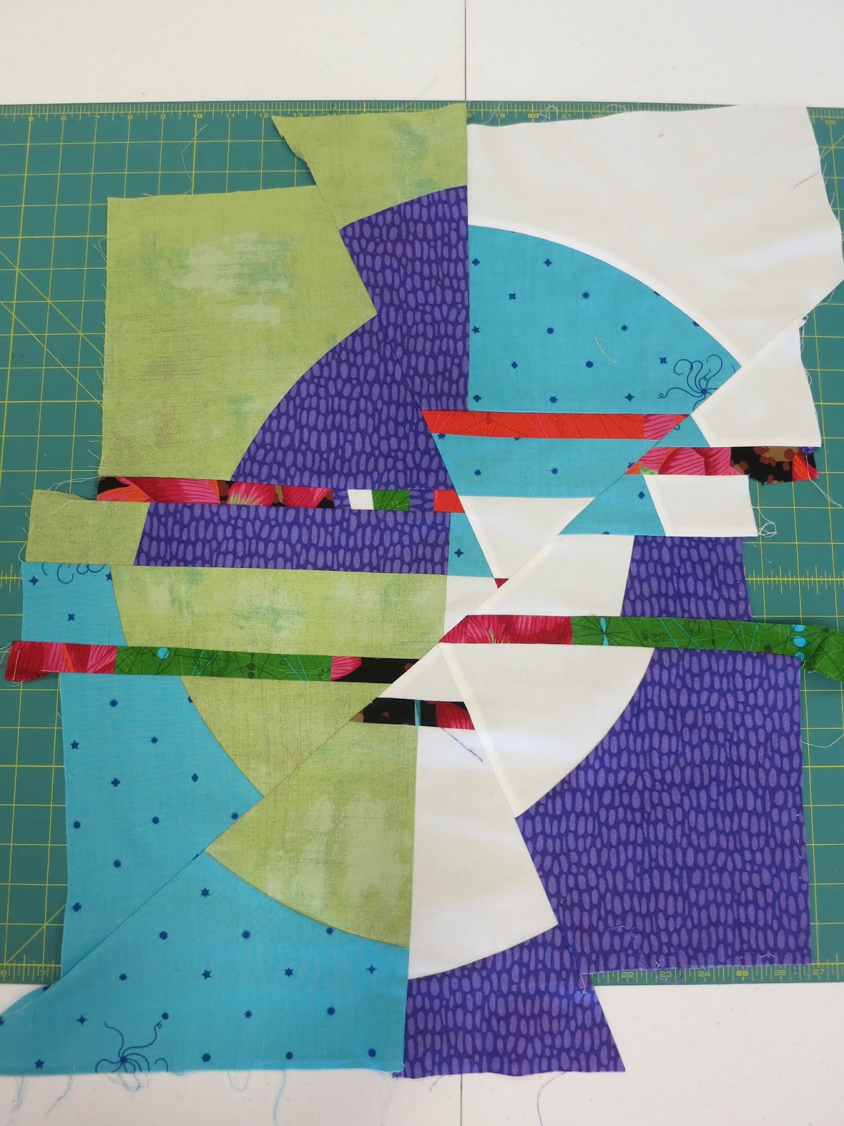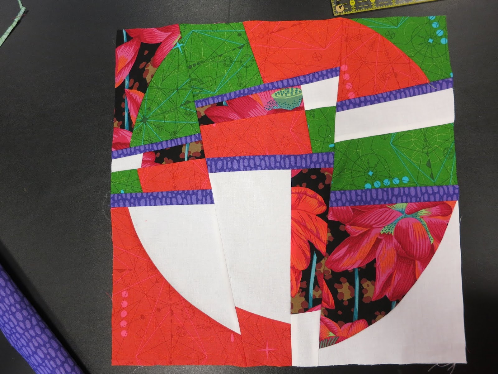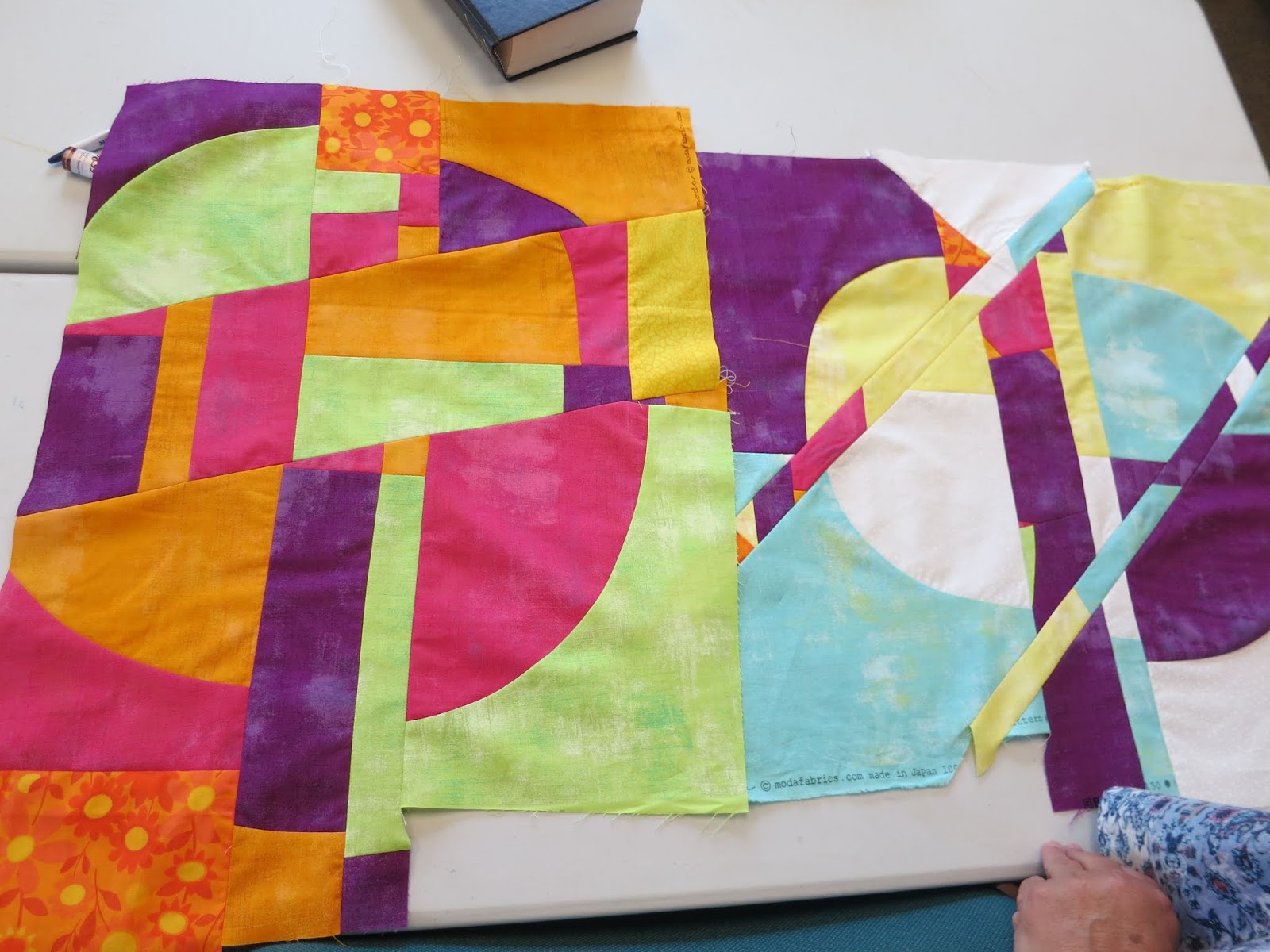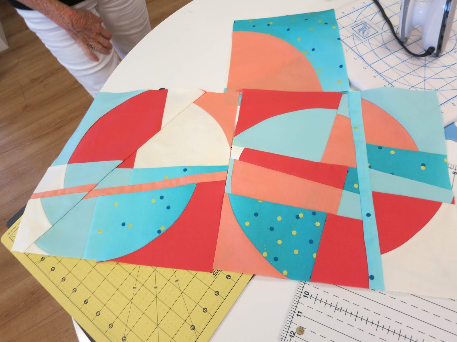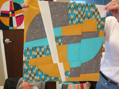 On Monday, April 8, we had the opportunity to learn improvisational block-making with Carole Lyles Shaw, a modern quilt maker from Bradenton, Florida, who belongs to the Sarasota Modern Quilt Guild.