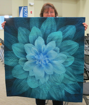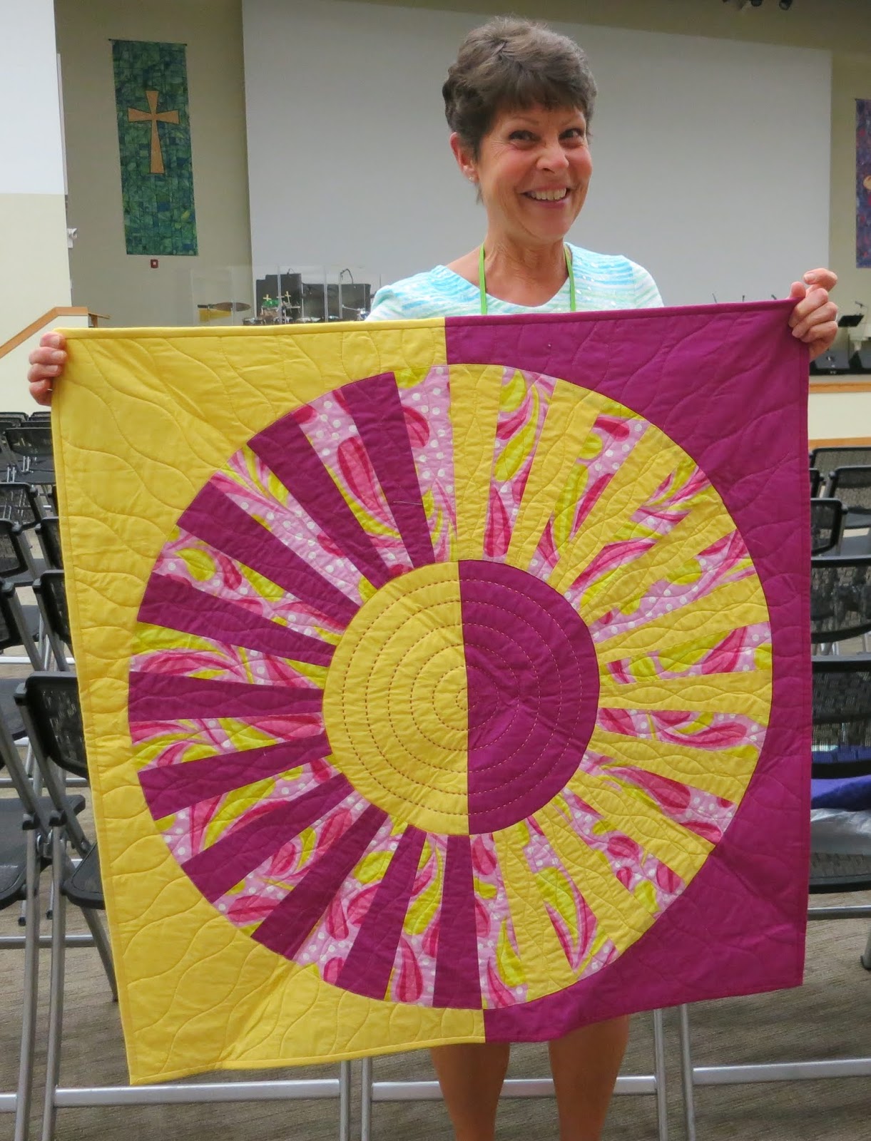 This version of “Carousel” was also quilted on her Bernina with rulers and walking foot spiral quilting.