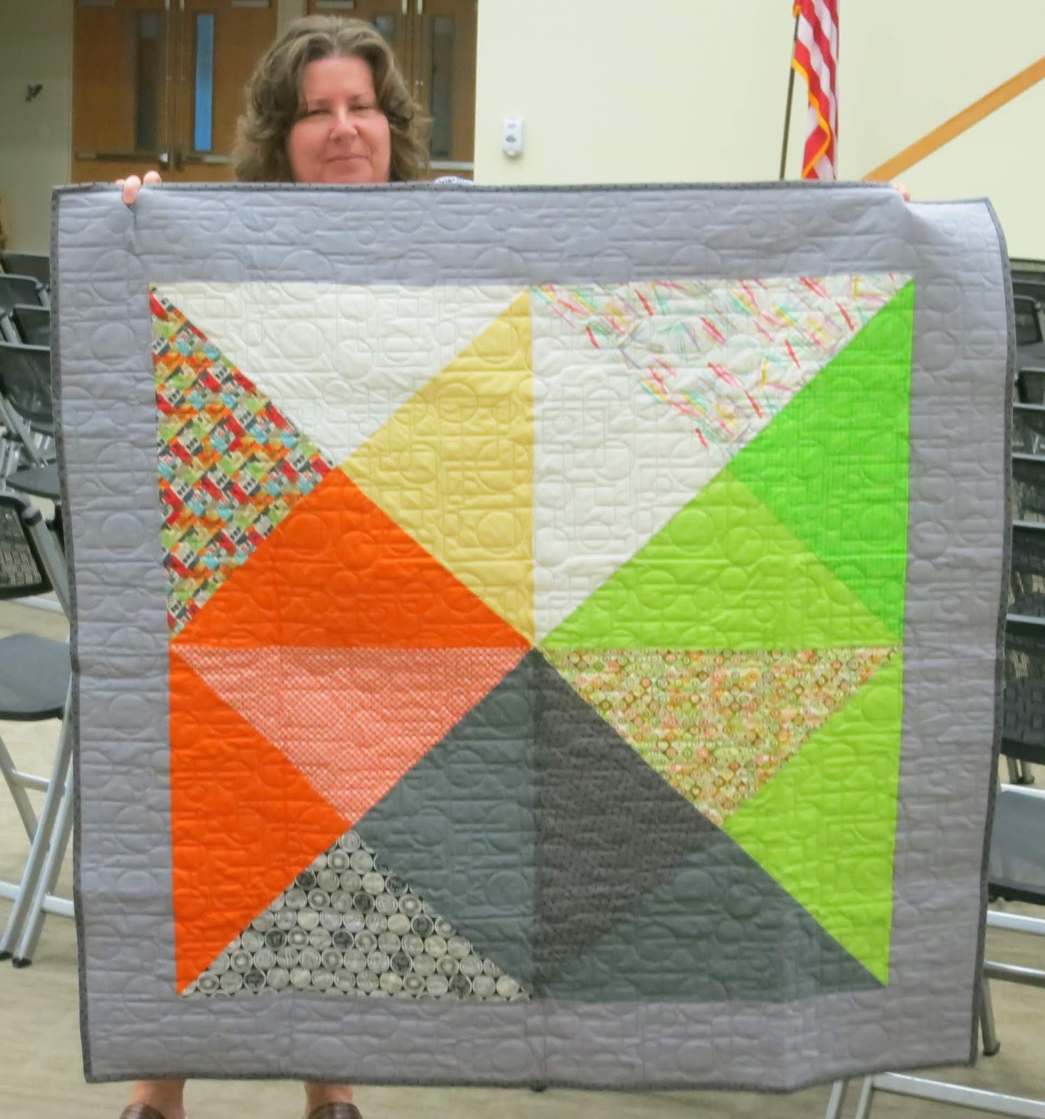 A whopping 32 quilters attended our May 13 meeting, with two of those quilters joining our chapter, and one a first-time visitor. As always, we’re happy when quilters are interested in modern quilts!