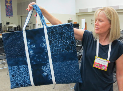 Jane @gonequiltinginflorida shared this 28″ X 21″ cutting mat/ruler carrier made with Moda fabrics Shibori by Debbie Maddy.