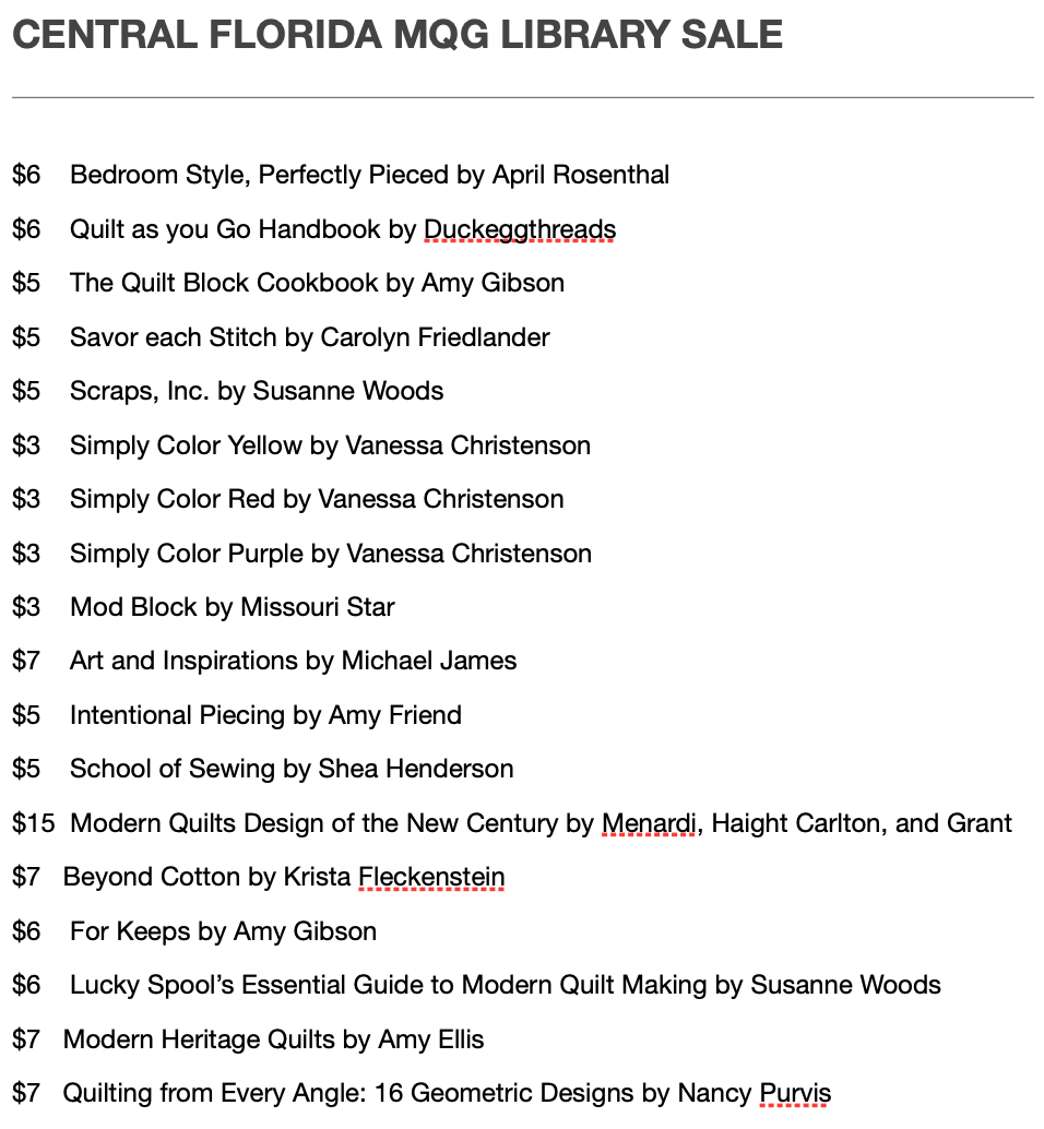 In addition to QuiltCon talk, we’ll have our first-ever sale of chapter library books.