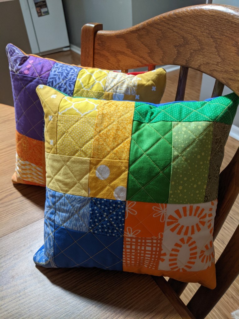 Using leftover Scrap Snap blocks, Rosemary V made these pillows that will also be donated with the quilt. They’re so cute! Thank you, Rosemary!