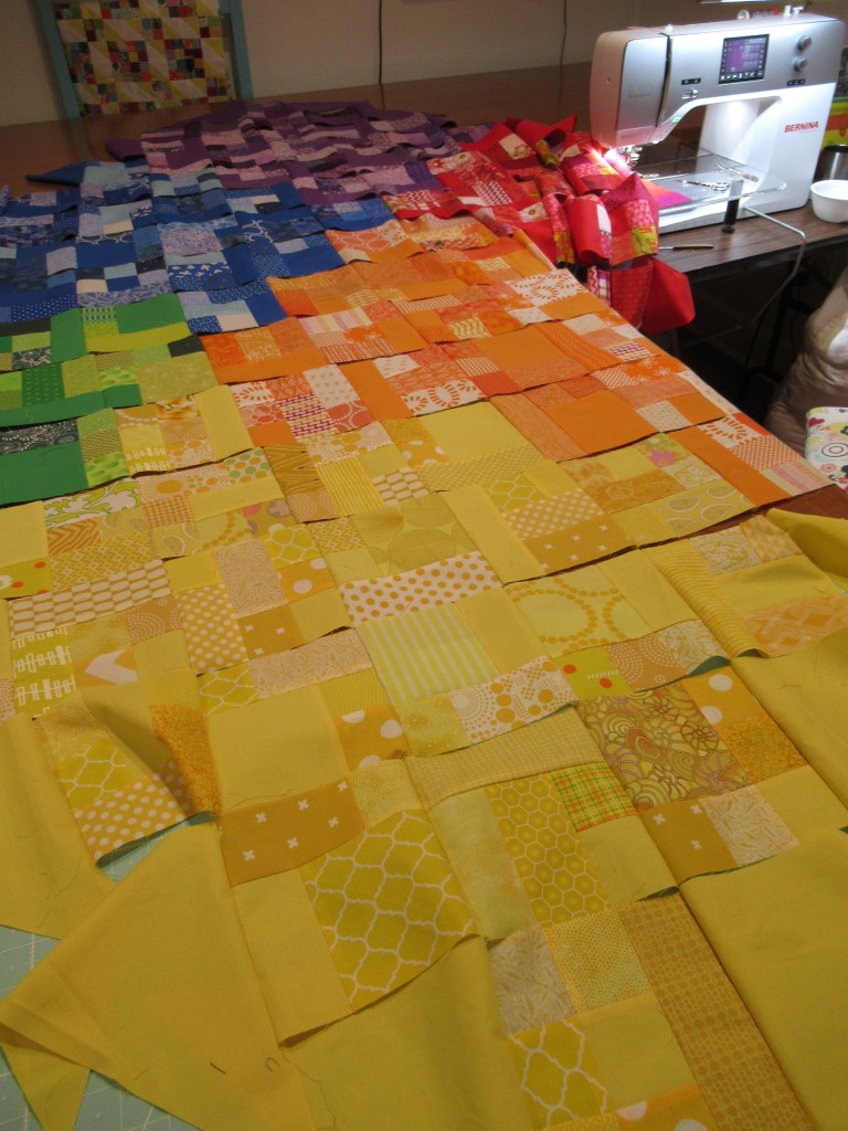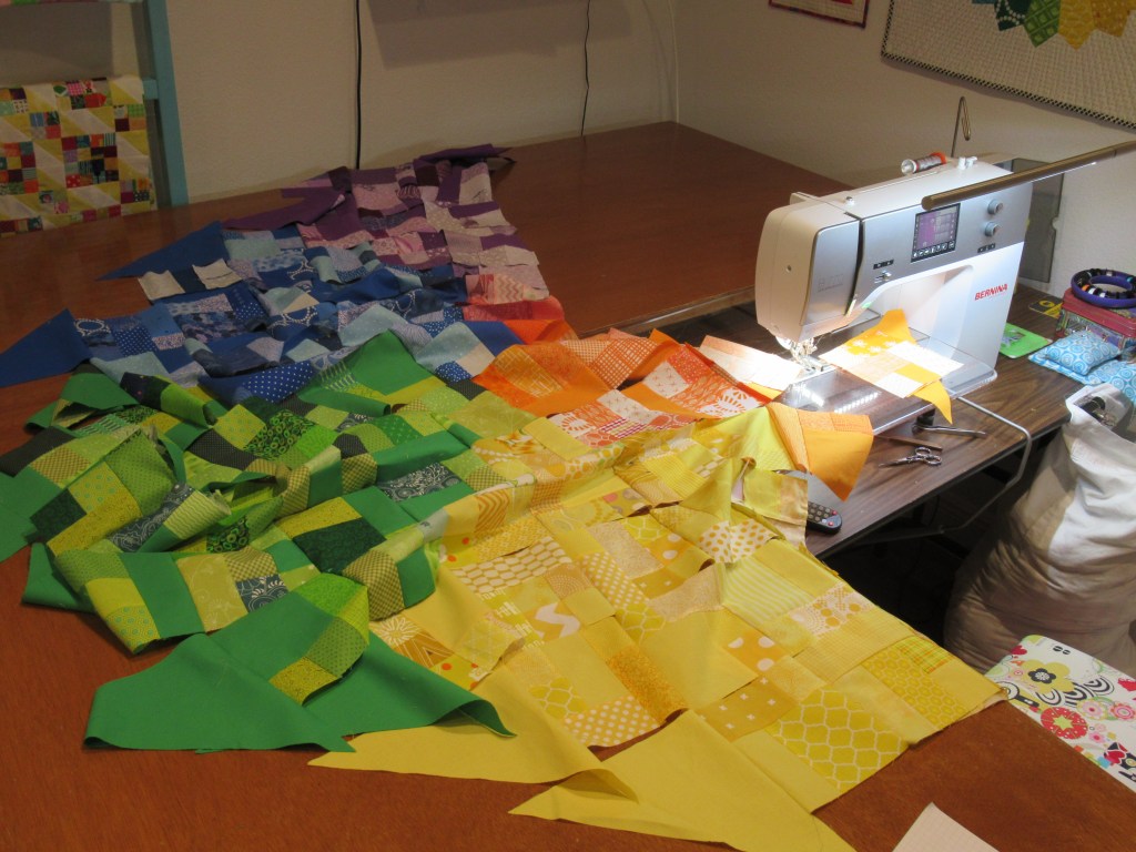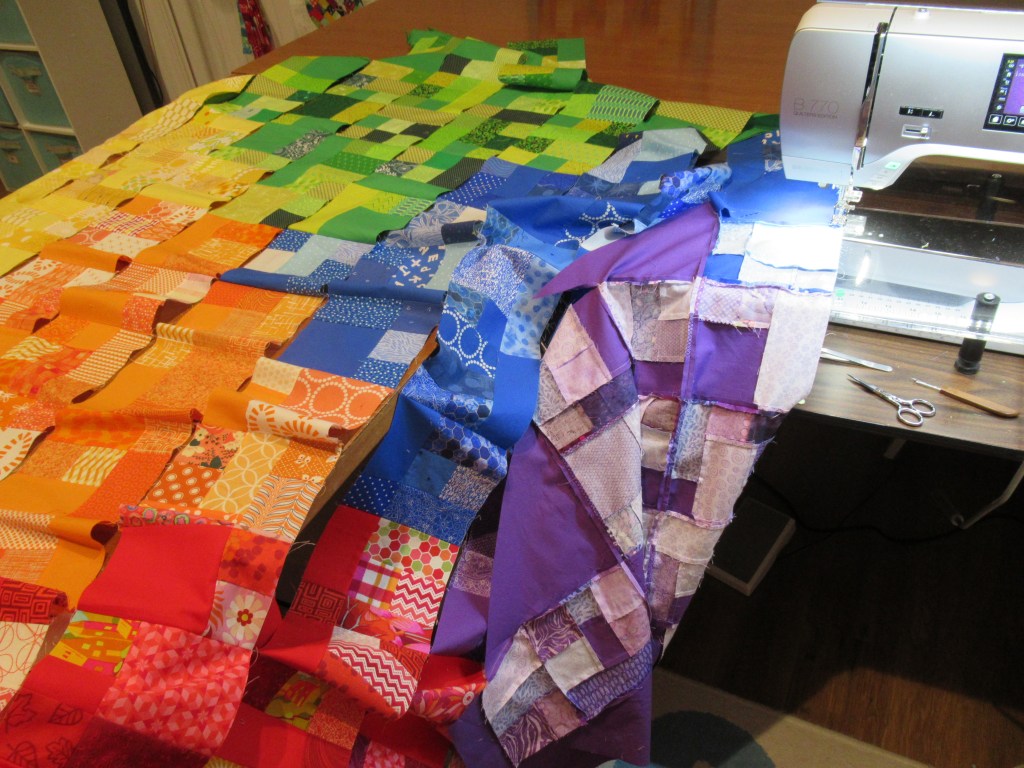 After the left side was chain-pieced into columns, the right side was chain-pieced.