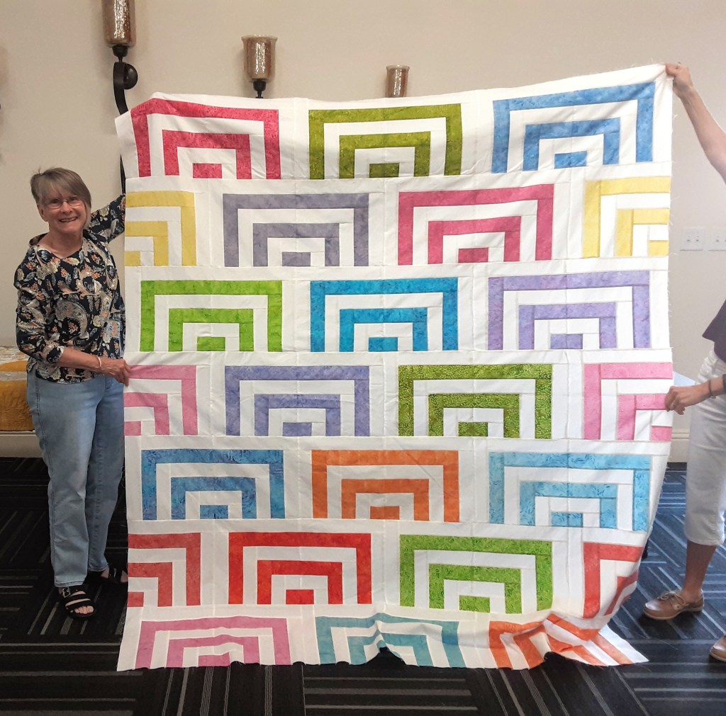 Margaret @redhotbobbin shared her version of Natalia Bonner and Kathleen Whiting’s pattern “Math Class Cabins” which she calls “Keke’s College Bound!” It is 72 by 85 and will be quilted on her APQS Millennium longarm machine.