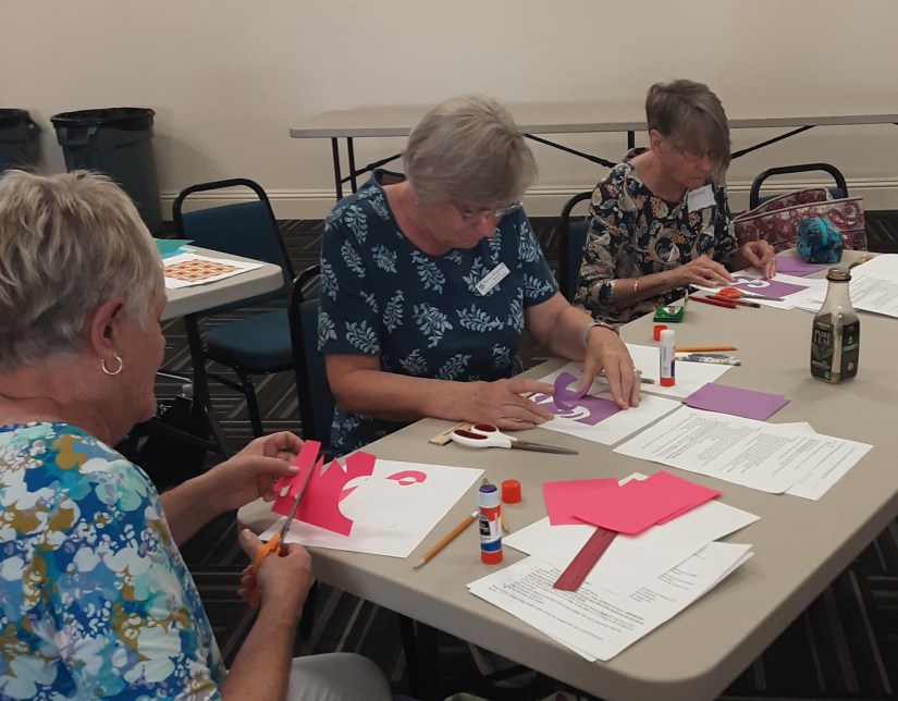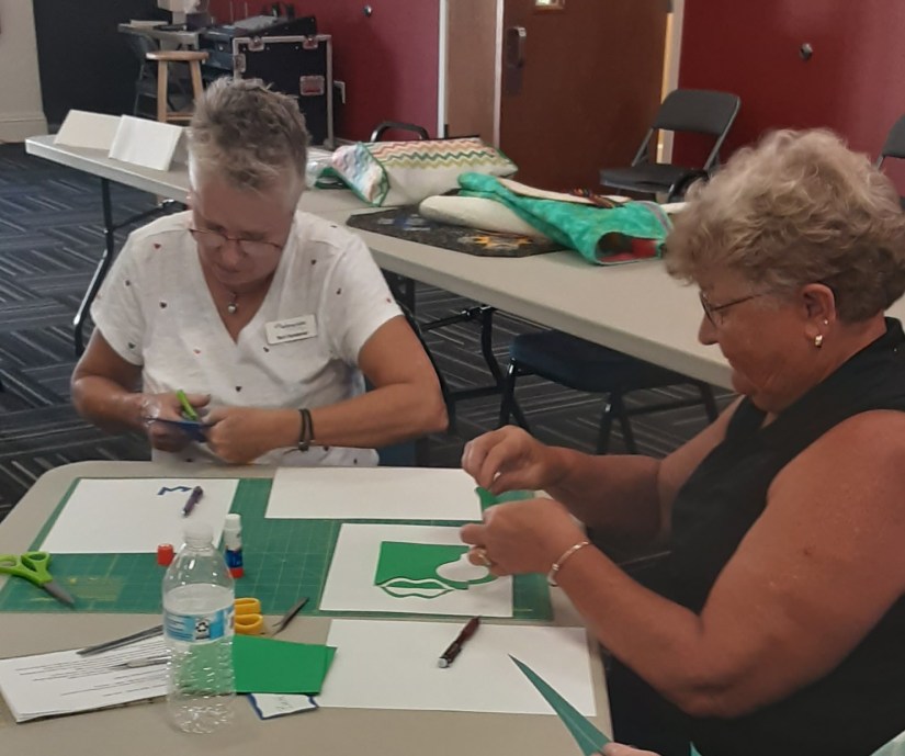 Members watched a short video while Beth prompted members to pay attention to specific clues that would make life easier as we tackled the project. Notan – can be defined as the Art of Balance through the Expansion of the Square. Members did two activities using colored paper to develop a better understanding of the technique. While doing the hands on activities, there were several “aha” moments.