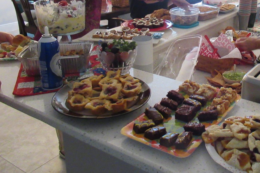 Ardie’s home was festive, the food aplenty and there were smiles everywhere as members of the Central Florida Modern Quilt Guild gathered to wish everyone Happy Holidays and share a little cheer. Needless to say there was food!