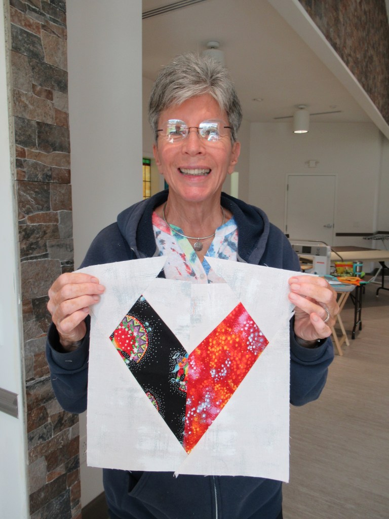 Most of our retreaters participated in helping assemble our QuiltCon Charity Challenge Quilt. Special thanks to our coordinators Rosemary (unable to attend retreat); Karen T., and Betty! We completed the quilt top, and it went home with Ardie who will quilt it. Thanks everyone!