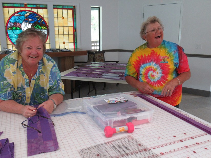 Working hard at their sewing stations were…. Ardie, Betty, Mike, Kathy, Cindy, Mel, Janice, Irene, Gwen, and Linda