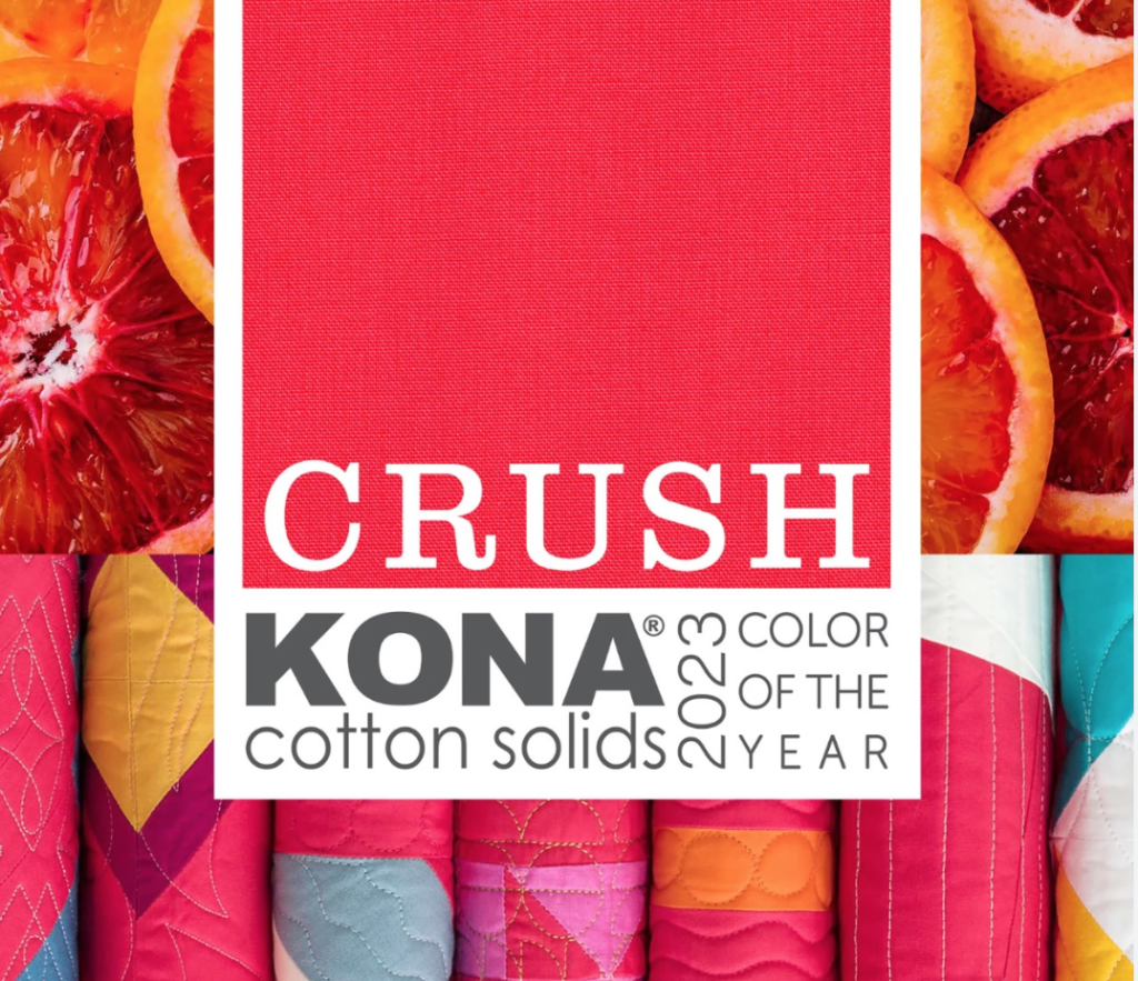 - Color of the Year: the color of the year (either Pantone’s Viva Magenta, or Kona’s Crush) and similar colors must comprise 70% of the quilt, unless used in combination with a two-color quilt option, in which it must be 50%.