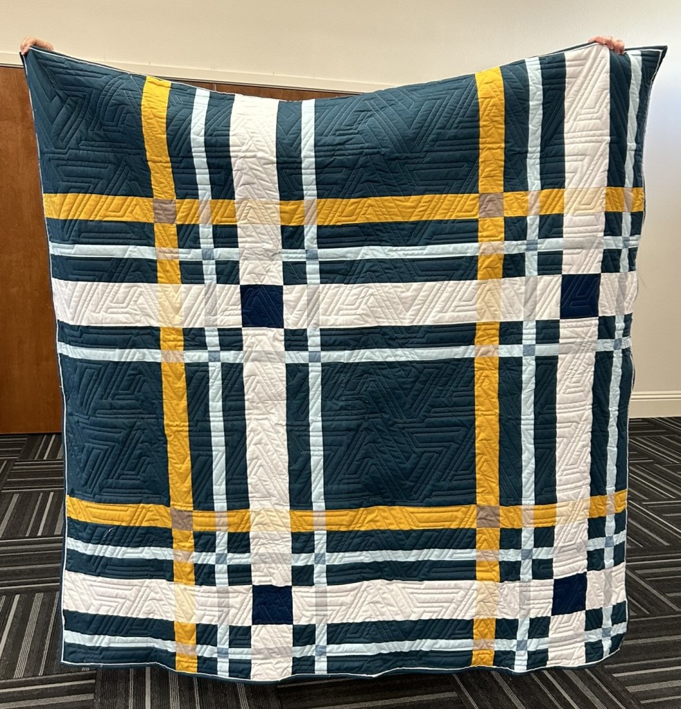 Bonnie shared a second quilt, entitled Upscale Plaid, made from a pattern by Lo & Behold Stitchery. She also quilted this on her longarm. Both of Bonnie’s quilts feature a blanket backing.