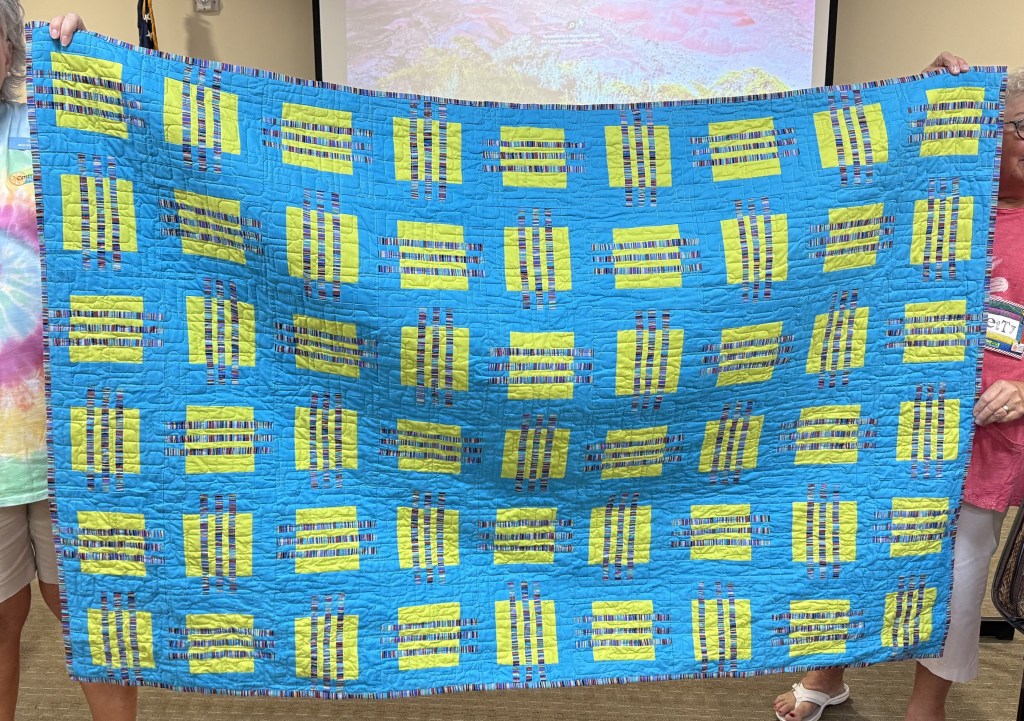QuiltFest Jacksonville entries are due July 25. If you want to enter your quilt, Linda has arranged transportation for quilts to and from Jacksonville. She will need your quilt by August 16. Carol W shared that her other quilt guild is taking a bus to Jacksonville on Friday, September 19. The bus is picking them up in Inverness, but it originates in Wildwood and it may be possible to get on there. The cost is $58 and Carol will share more information.