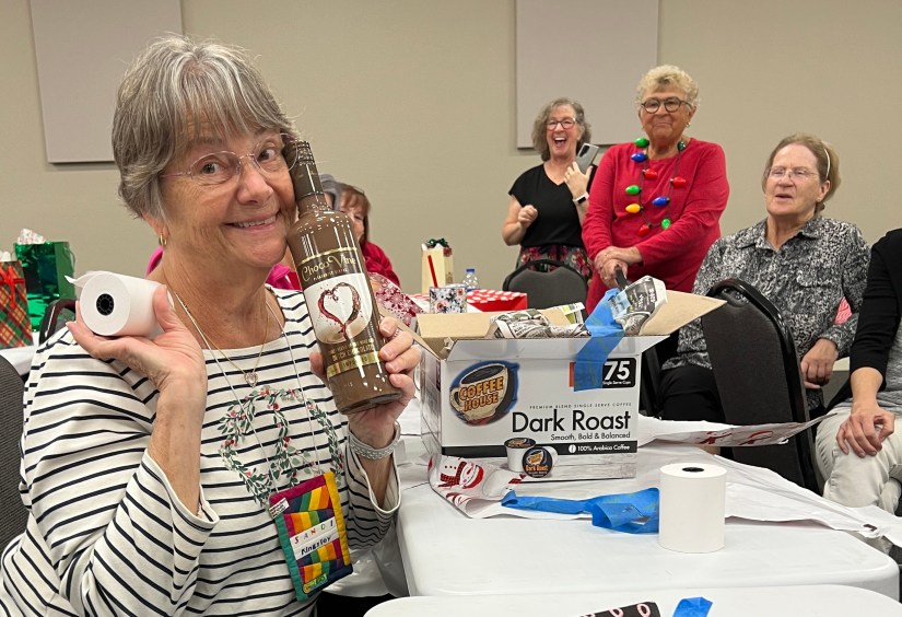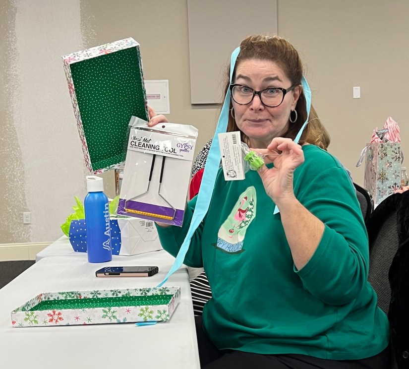 A highlight of the gathering was swapping wrapped gifts. They were to be “modern” and valued at about $15.